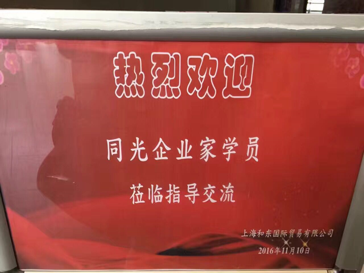 为让同学们从理论课堂走到实体企业演练对接,更有效的帮助同学精准匹配需求,对接资源,2016年11月10日(周四下午)走进EMBA26/27/28/29期同学企业-上海和东国际贸易有限公司。