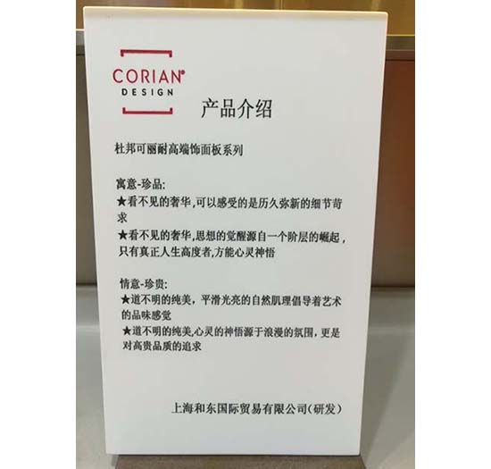 《第23届中国国际厨房、卫浴设施展览会》于2018年6月5日-8日在上海新国际博览中心举行,我司非常荣幸的参与此次展会,本次活动中隆重推出了我司研发的可丽耐薄板,此薄板可应用在衣柜、橱柜等家具方面,也展示了杜邦大理石的多样性,领导们的亲临指导,使得服务更加贴近于客户,让客户更能亲身体验产品。